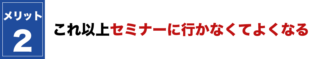 この考え方と技術を身につけていただくことで、もうこれ以上、不必要にセミナーに参加しなくても良くなることをお約束します。