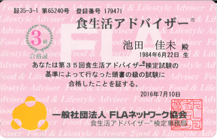 食生活アドバイザー3級取得